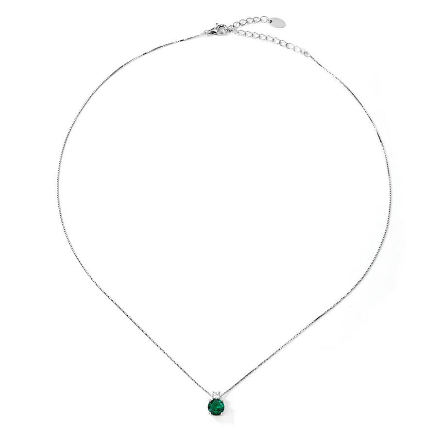 Model : NE-A0018Material : S925 Silver (Platinum Plated) with Cubic ZirconiaTotal Length : 45cmGross Weight : 2.22ggems Color : EmeraldCutting Style : Round Brilliant0.80 carats
