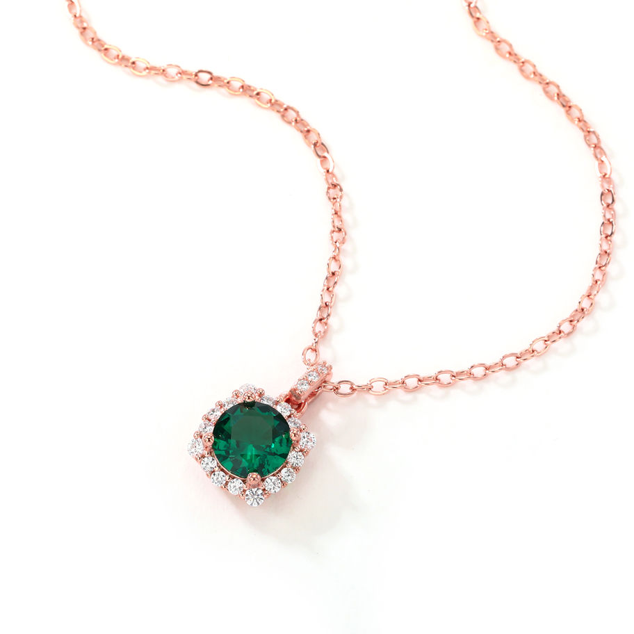 Model : NE009860Mateiral : S925 Silver (Rose Gold Plated) with Cubic ZirconiaTotal Length : 45cmGross Weight : 2.0gGems Color : EmeraldCutting Style : Round Brilliant0.75 carats